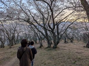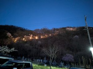 以前から光城山の夜桜ライトアップを遠目から見て、一度行ってみようと家族で話しつつ早数年。